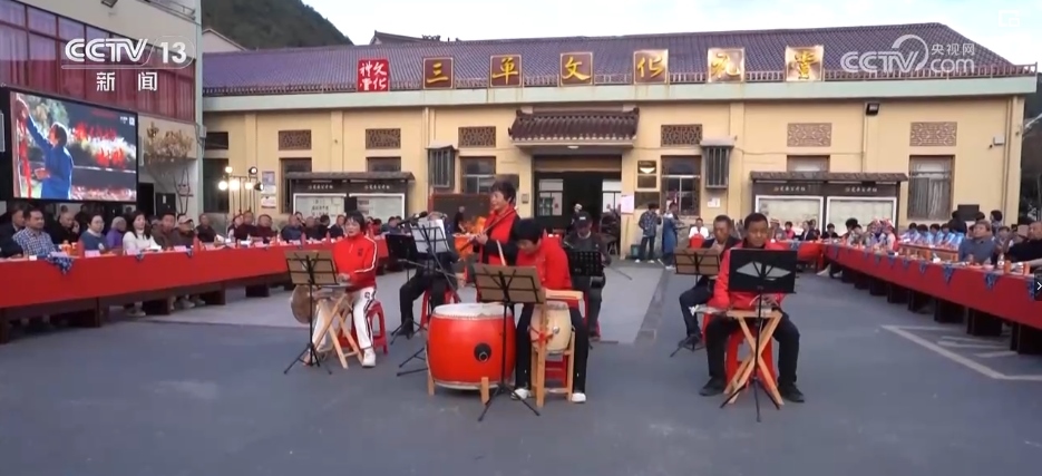 在浙江东阳市三单乡,“我们的村晚”这两天火热开场。一大早,村里民乐表演团的成员就拿着锣、抬着鼓开始排练了。