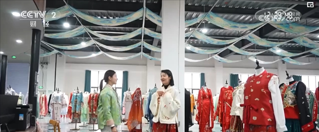 山东菏泽曹县电子商务服务中心主任张龙飞介绍,他们和北京服装学院等院校,建立了电商产业发展学院,谋划汉服“出海”的规划。