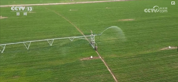 根据农业专家的精准测算和调度,园区工作人员启动了大型指针式喷灌机。