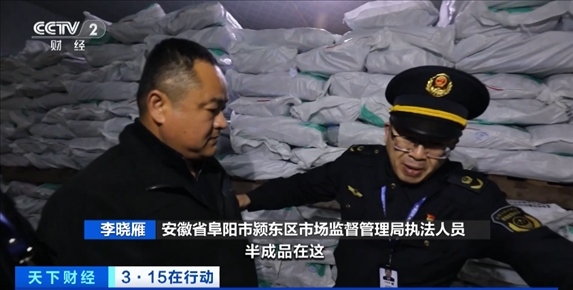 总台央视记者 李雪峰:我所在位置是安徽阜阳颍东区。我身后就是被“3·15”晚会曝光的安徽厨先生食品有限公司,现场已经有大批的执法人员抵达了这里,对这家企业进行查处。
