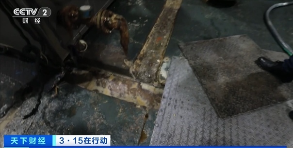 总台央视记者 李雪峰:在企业的生产车间里,可以看到环境是十分恶劣。地面上污水横流,夹杂着油污的水顺着水渠一直涌向了地沟,生产车间里设备已是锈迹斑斑。