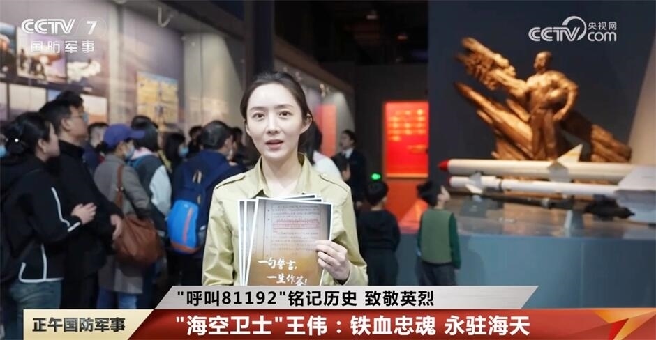 央视网消息:4月1日是“海空卫士”王伟牺牲23周年纪念日,2001年4月1日,海军航空兵飞行员王伟驾驶着战机巡航在海天,突遭外机大转向撞击,飞机坠海,王伟壮烈牺牲。81192是王伟烈士生前所驾驶战机的编号,每年的4月1日,“81192”这组数字都会刷屏,大家会用呼唤“81192”返航的方式纪念英雄。为发挥爱国主义教育基地作用,引导青少年铭记海军英雄,缅怀“海空卫士”王伟烈士,3月31日上午,海军博物馆开展“呼叫81192”主题活动,用特别的方式来向王伟烈士寄托哀思。