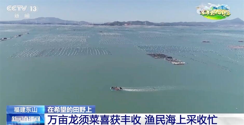 跟随镜头,我们来到丰收的“海上菜田”。在福建漳州东山县海域,两万多亩龙须菜迎来了采收旺季。从空中看去,“龙须菜田”一块块排列整齐。渔船穿梭在“海上菜田”中,渔民们接替收割、搬运龙须菜。