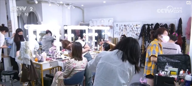 晚上8时,在这家写真店,仍有不少消费者在做妆造。负责人介绍,泼水节期间,他们的客流量比平时多了一倍。