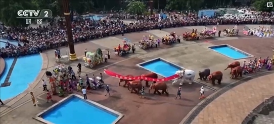 数据显示,泼水节第一天,西双版纳州景洪市预计接待游客为43.47万人次,同比增长23.77%,旅游综合总收入预测超过5.3亿元,同比增长超45%。