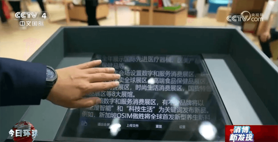 受到关注的还有最新的科技产品。看上去很普通的一个讲台,其实在空气中藏着一块可以操作的屏幕。据介绍,这款产品叫空中成像提词器,是空中成像无介质的,新品发布后,已经有十几家单位对该产品进行了咨询。