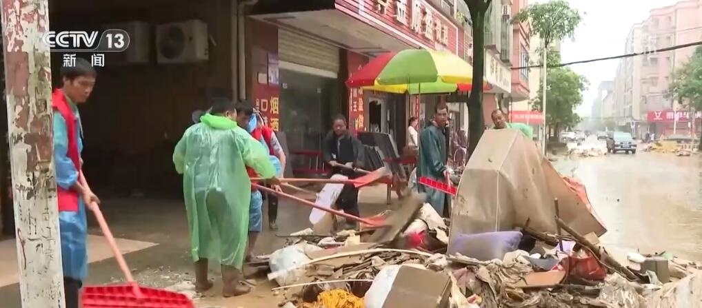 在清远英德市浛洸镇,被浸了两天多的镇区已经全部退水,当地组织党员干部投入清淤工作,同时加紧时间进行清洗和消杀。