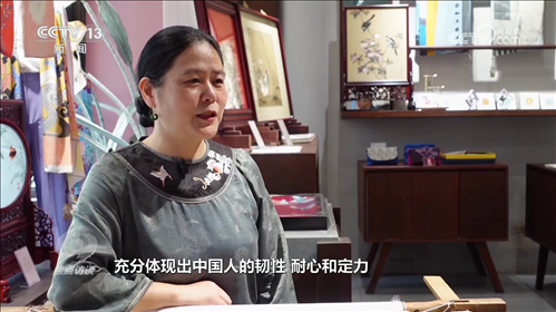 卢建英:“当时我在绣一幅《桃花太平鸟图》,习近平总书记走到了我的绷架前。他说你好,很亲切,很和蔼,看得非常仔细。他说中华文化的传承力有多强,通过这个苏绣可以看出来,像这样的功夫充分体现出中国人的韧性、耐心和定力,这是中华民族精神的一部分,能得到总书记的认可,真的是倍感荣耀。”