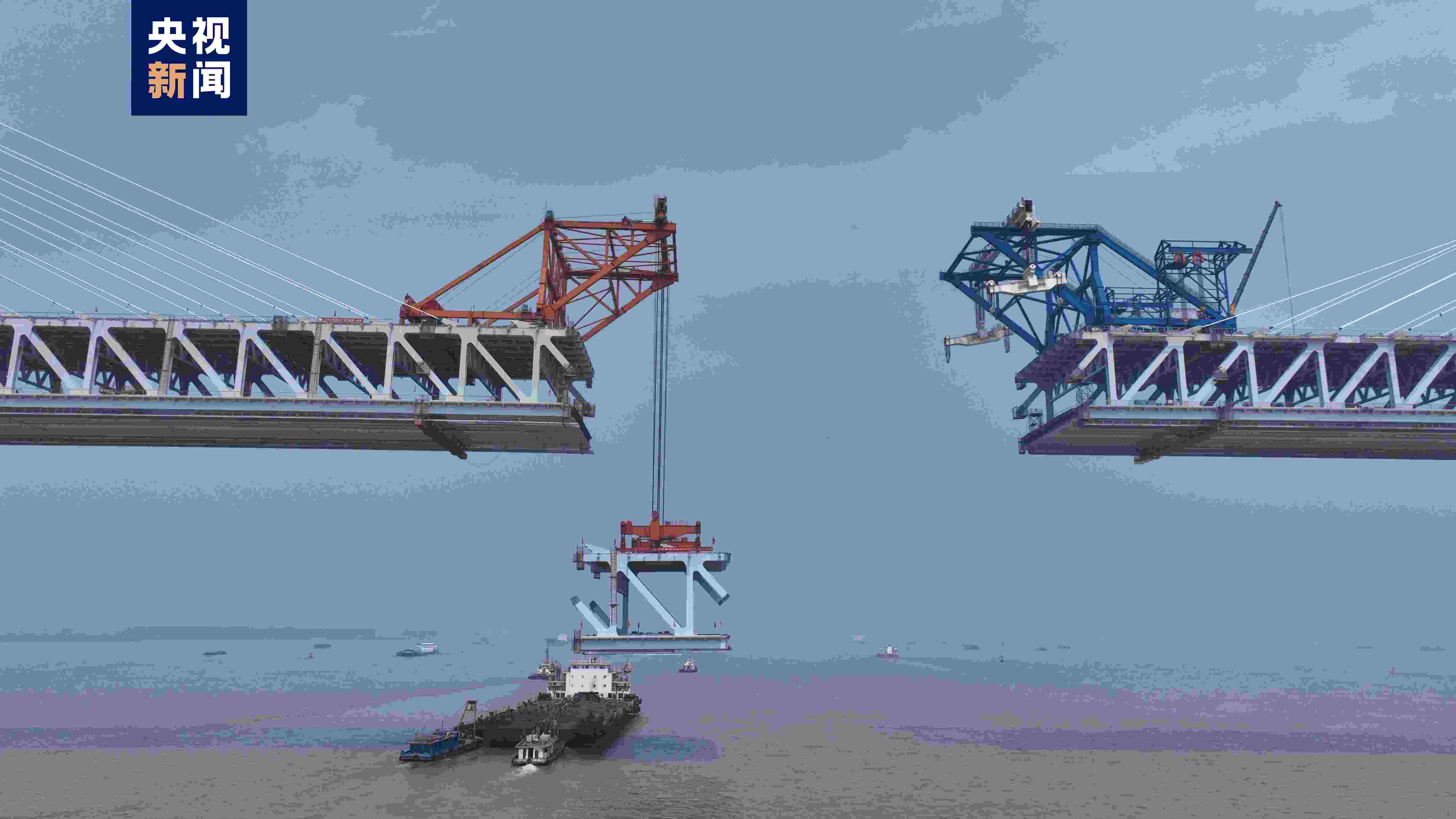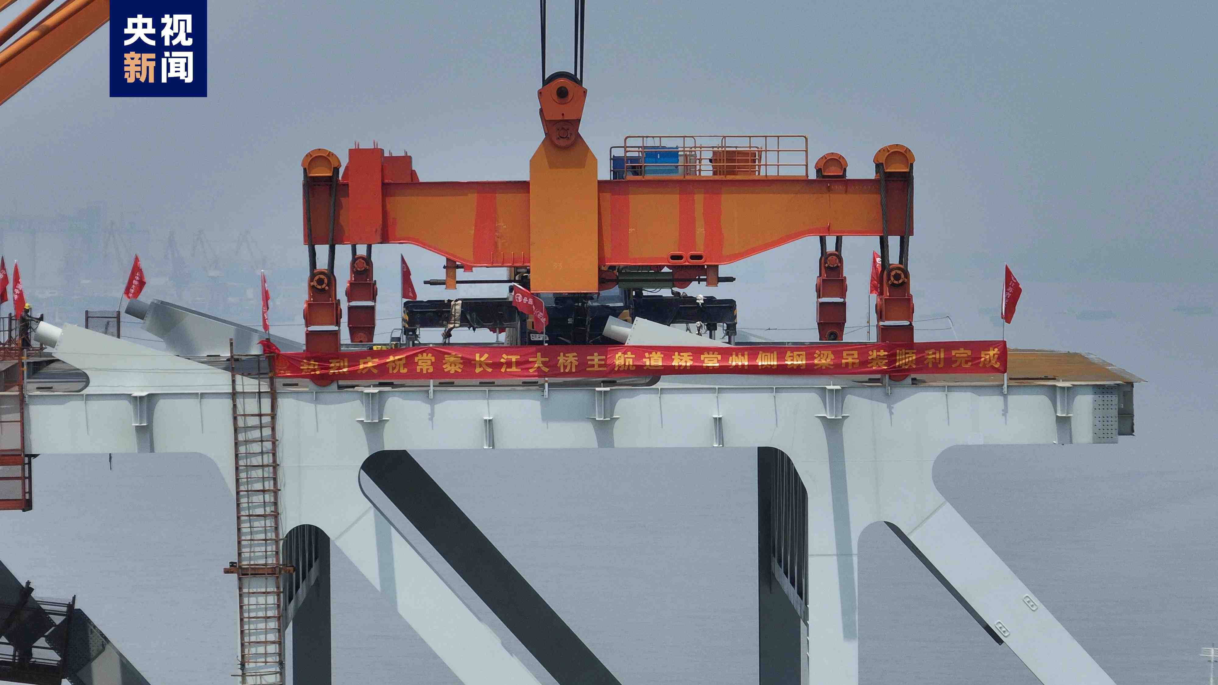 5月7日上午,常泰长江大桥主航道桥常州侧,最后一个大节段钢梁平稳吊装完成,标志着常泰长江大桥常州侧主体工程全部完成,全桥预计6月合龙。