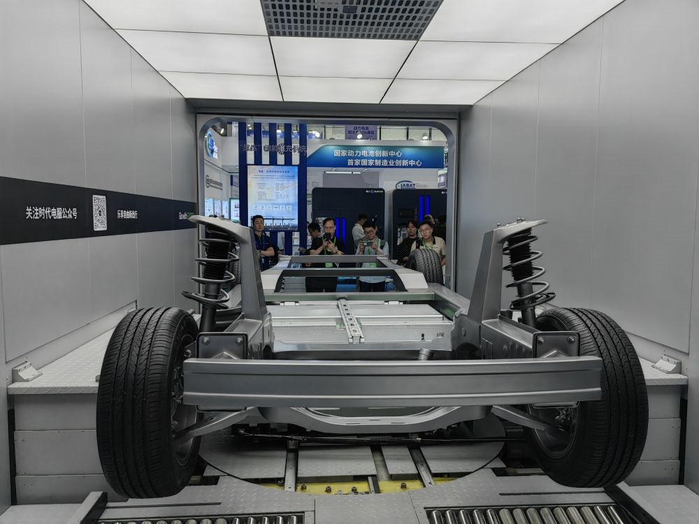 这是在四川省宜宾市举行的2023世界动力电池大会上展示的新能源汽车换电系统(2023年6月9日摄)。新华社记者 胡旭 摄