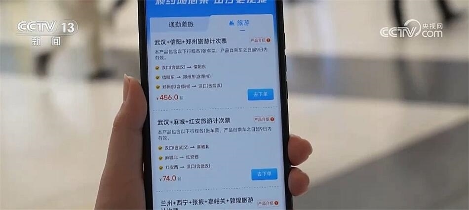 国铁武汉局汉口车站值班站长席姗姗在手机上进行了展示:“除了在铁路12306网站上购票,手机12306App也可以购票。像这样打开App,点击下方‘计次·定期票’,在‘计次·定期票’功能页面中选择‘旅游’,就可以看到旅游计次票,点下单就可以购买了。”