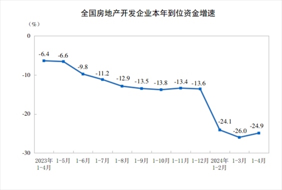 央视网消息:据国家统计局网站消息,2024年1—4月份全国房地产市场基本情况。