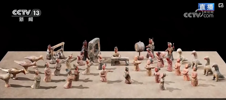 让孔子着迷的《韶》乐究竟是什么?山东博物馆将这些陶俑进行了数据采样,以3D虚拟动画方式,还原齐国贵族的乐舞场景。