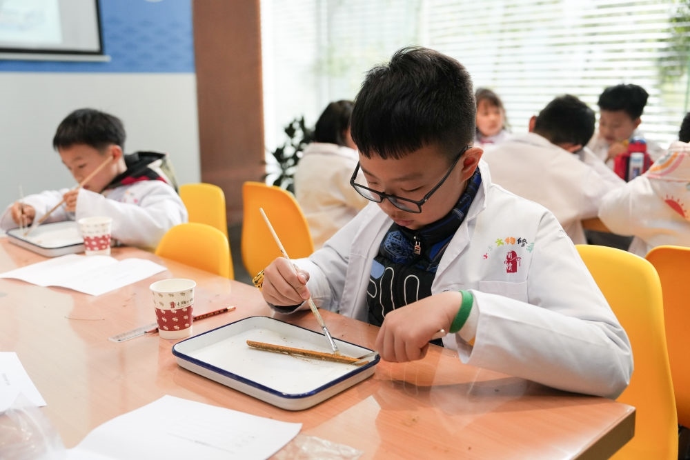 2024年3月16日,孩子们在长沙简牍博物馆参与社会教育活动“探秘简牍的清洗与保护”。湖南是简牍出土大省,长沙简牍博物馆推出了系列展陈、社会教育活动等,让观众能走近这跨越千年的“百科全书”。