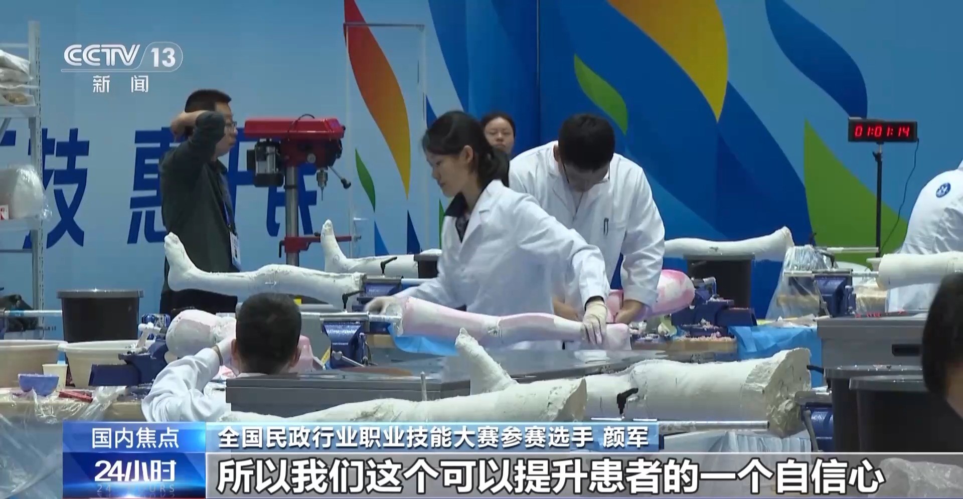 全国民政行业职业技能大赛参赛选手 毕珂磊:通过自己的双手,让残疾人可以真正地站起来,看着他们能开心地走起来,我们从内心感到非常高兴。