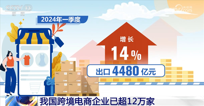商务部有关负责人介绍,我国跨境电商整体规模从小到大、从大到优,成为我国外贸发展的有生力量。2024年一季度,跨境电商进出口5776亿元,增长9.6%,其中出口4480亿元,增长14%。目前,我国跨境电商企业数量已超12万家,跨境电商企业累计在海外注册商标超3万个。过去5年,我国跨境电商贸易规模增长超过10倍。