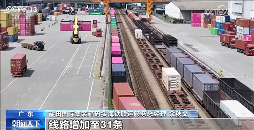 盐田国际集装箱码头海铁联运服务总经理余秋文介绍:“截至今年4月份,我们共开通了14个海铁联运内陆港,线路增加至31条,覆盖了大湾区、华中、西南等重要的经济区域。”
