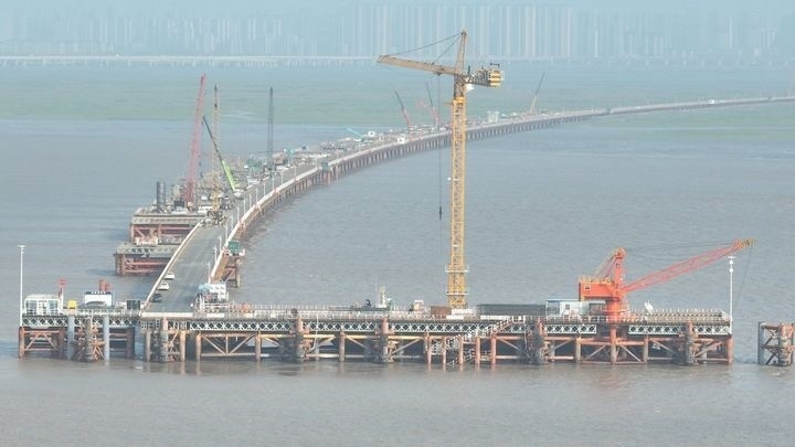 杭州湾南岸,千根桩基正朝海面深处进发。这里是杭州湾跨海铁路大桥,也是世界上在建长度最长的高速铁路跨海大桥,这条线路,将串起宁波、嘉兴、苏州、南通等城市,大幅拉近长三角主要城市间的时空距离。