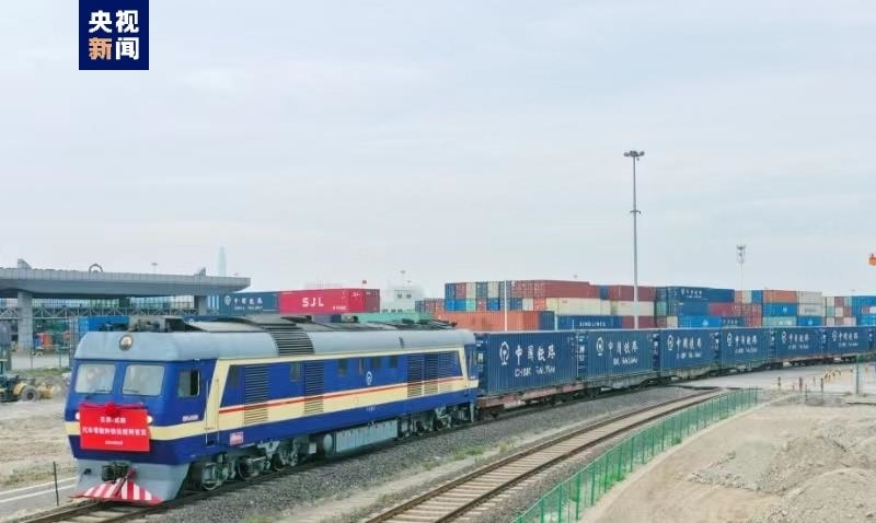 6月8日上午,一列满载汽车零配件的集装箱快运班列从中国铁路北京局所属天津集装箱中心站驶出,开往成都城厢站。
