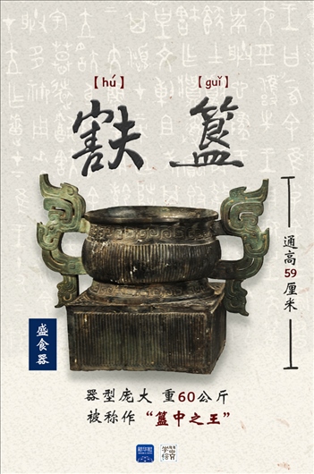 现展出于宝鸡青铜器博物院的 簋号称“簋中之王”。圆形簋身与方形底座相连,簋内铸有铭文124字,由此得知它是西周第十位天子周厉王姬 为祭祀先祖、祈神降福而作。