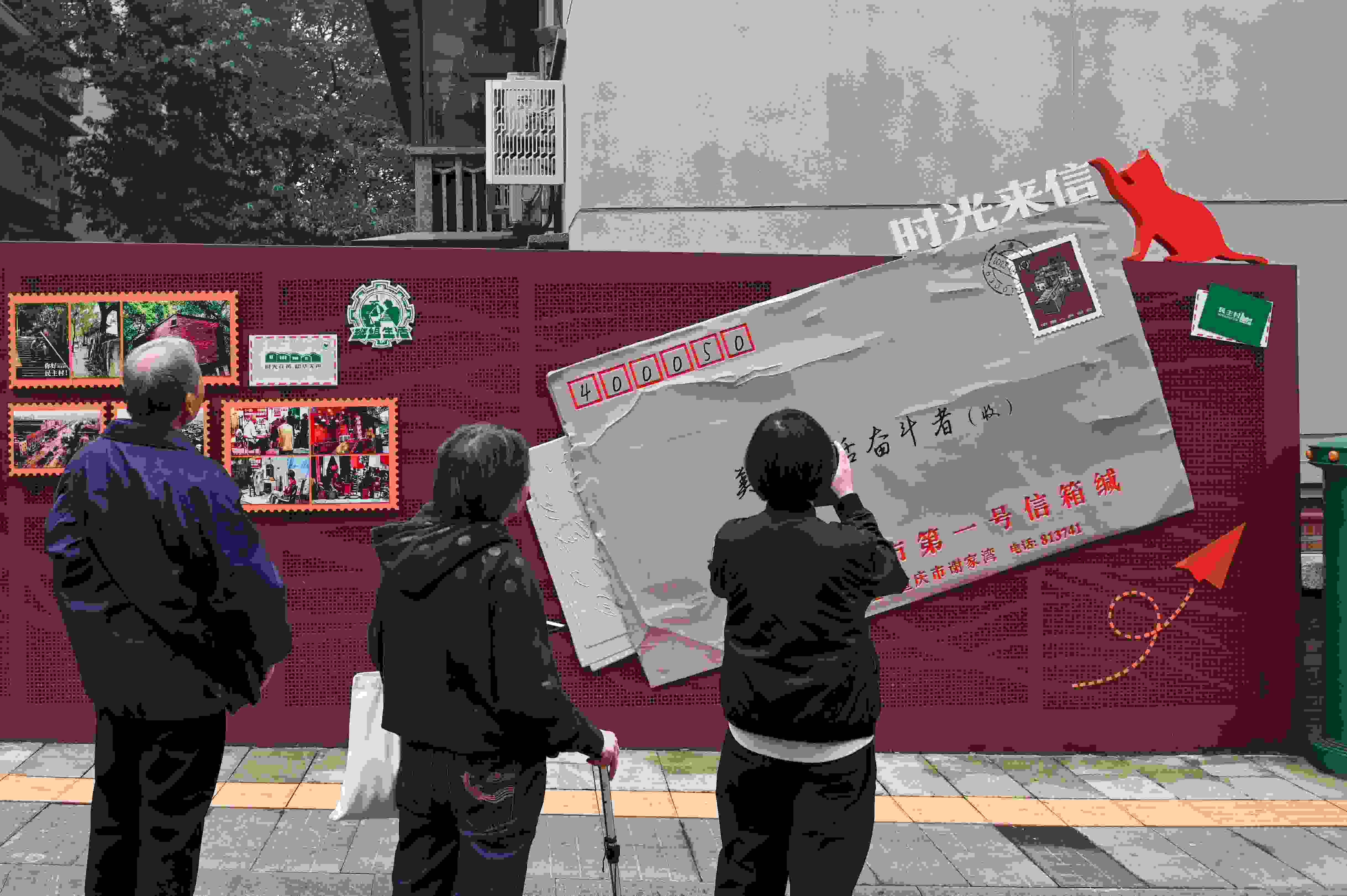 在重庆市九龙坡区民主村社区,一封寄给“美好生活奋斗者”的巨大信封,几乎铺满一面红色的墙。市井烟火气与新潮现代的时尚范儿融合交织,让这里成为新晋网红打卡地。