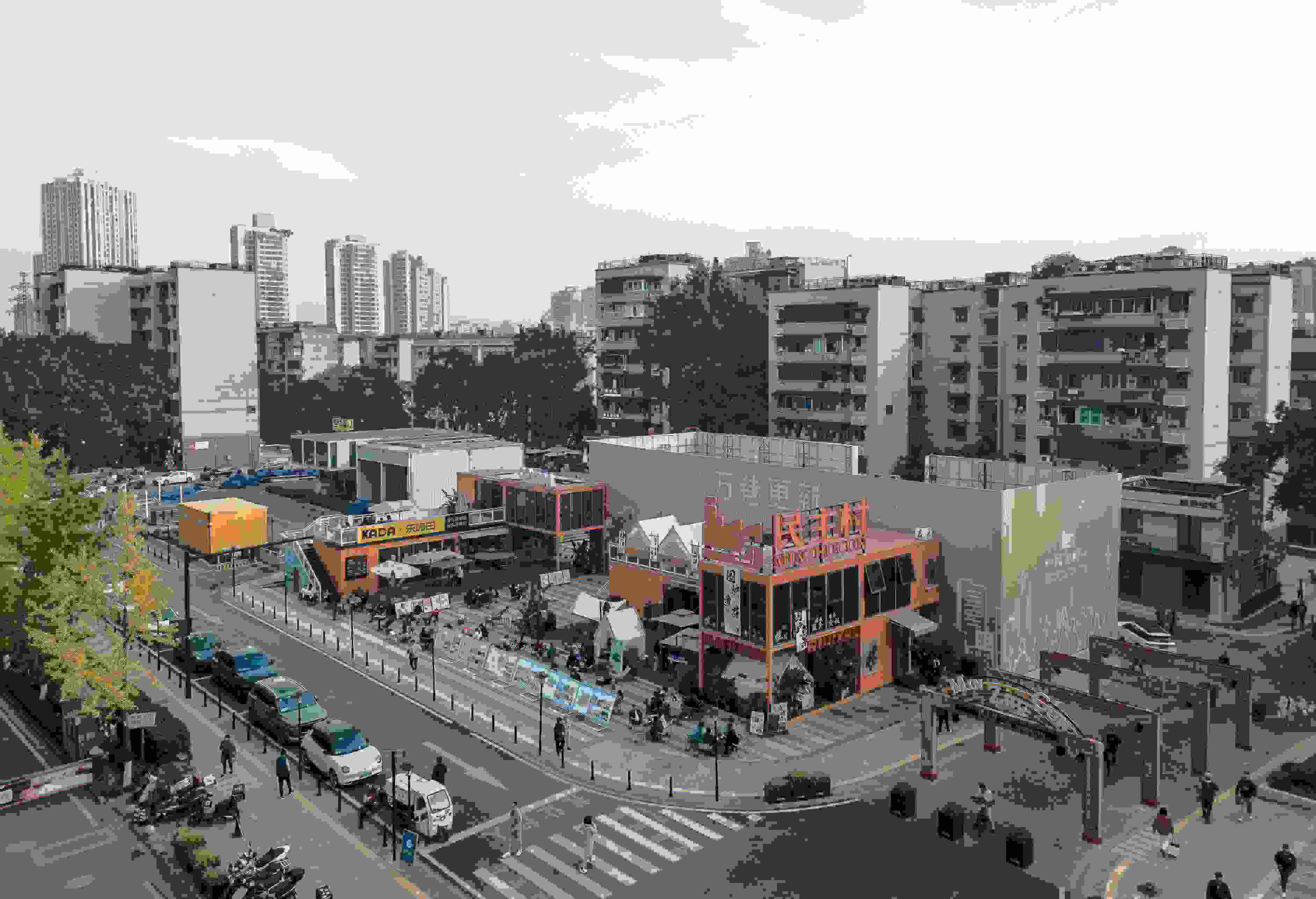 △民主村社区入口处,以集装箱为载体打造的餐饮集聚区。