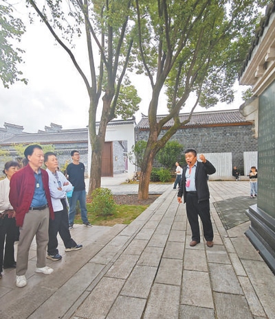 安徽桐城文昌街道六尺巷社区党总支书记张耘为游客讲述六尺巷的故事。本报记者 李俊杰摄