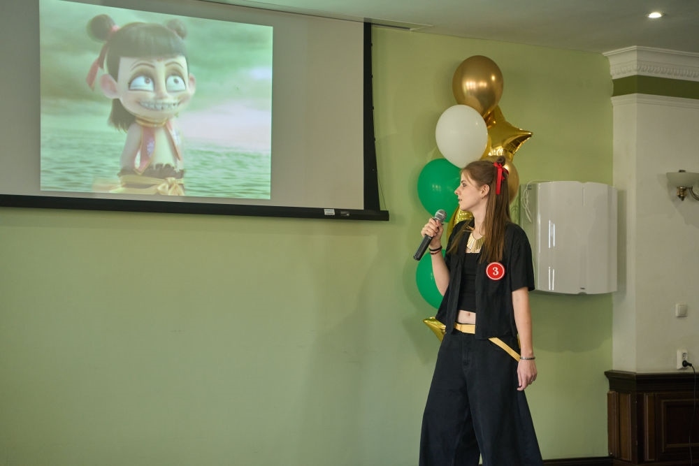 2025年4月10日,第24届“汉语桥”世界大学生中文比赛俄罗斯赛区预选赛10日在符拉迪沃斯托克举行。这是选手为电影《哪吒2》进行配音表演。