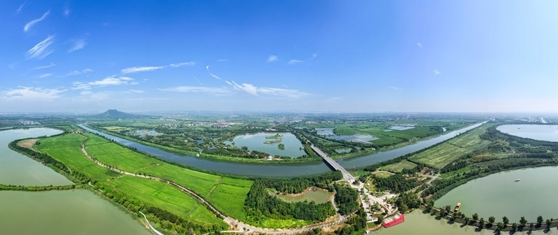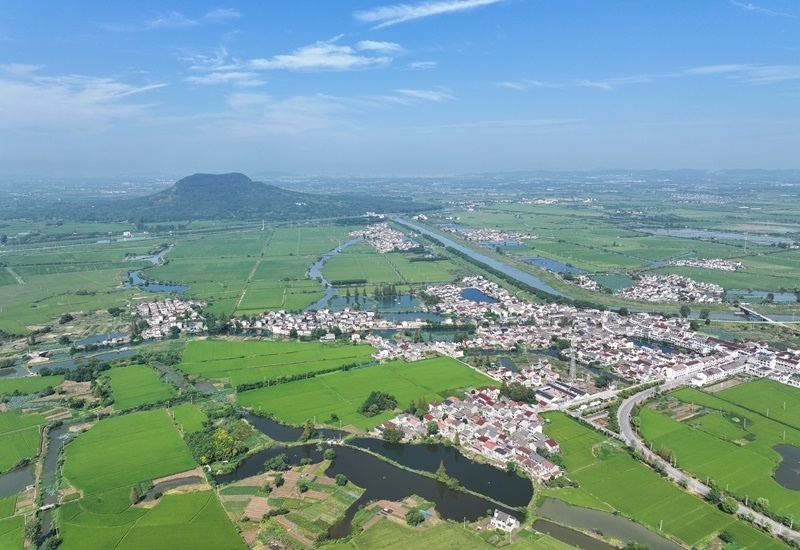 9月15日拍摄的句容赤山湖及周边农田(无人机全景照片)。