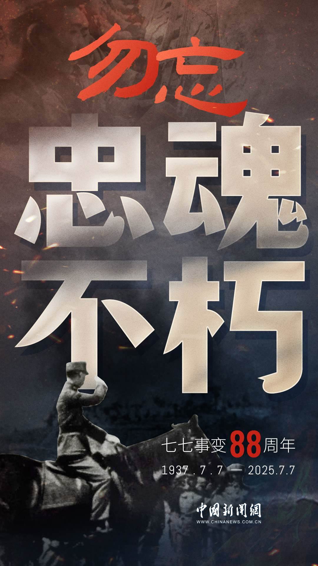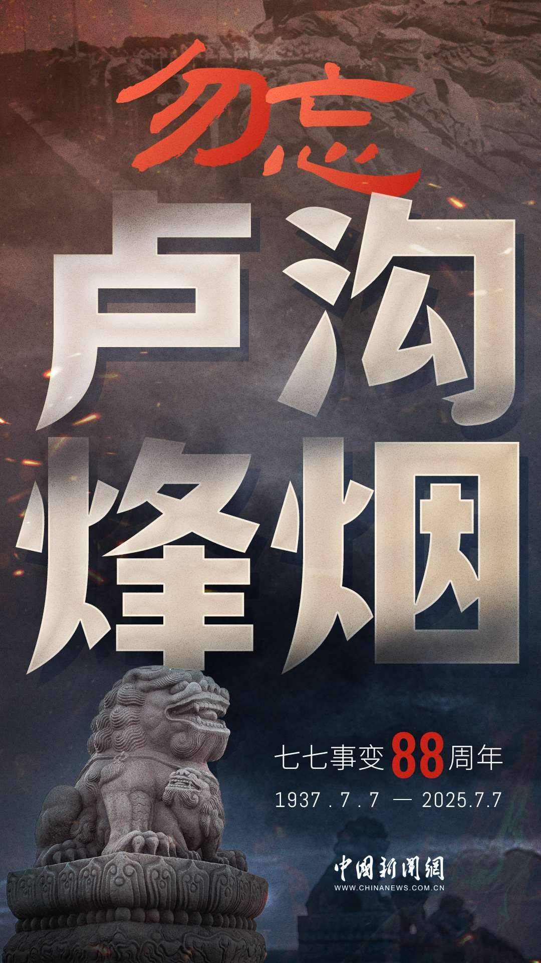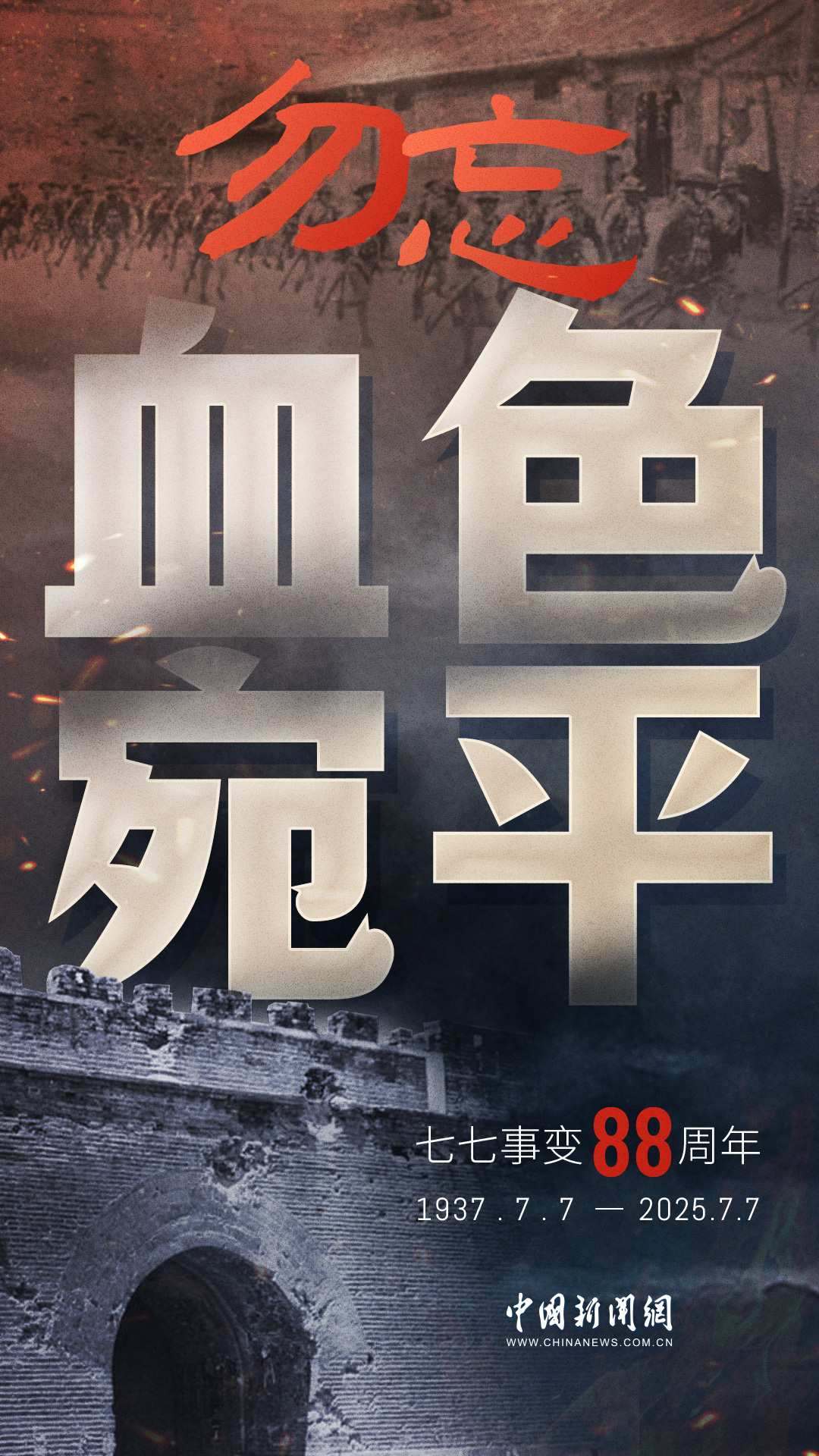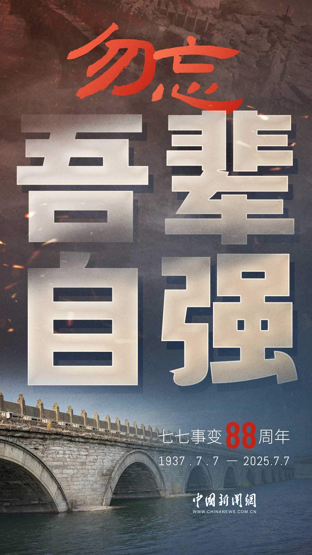 1937年7月7日,卢沟桥的枪声撕裂长夜,中华儿女赴汤蹈火,以血肉之躯筑起御敌长城。88载岁月流转,硝烟虽散,弹痕犹在,那段浸透血泪的历史,是刻在民族记忆里永不褪色的烙印。今日山河锦绣,国泰民安,正是先烈用生命换来的盛世。七七事变88周年,致敬英烈,铭记国殇,吾辈自强,护山河无恙!