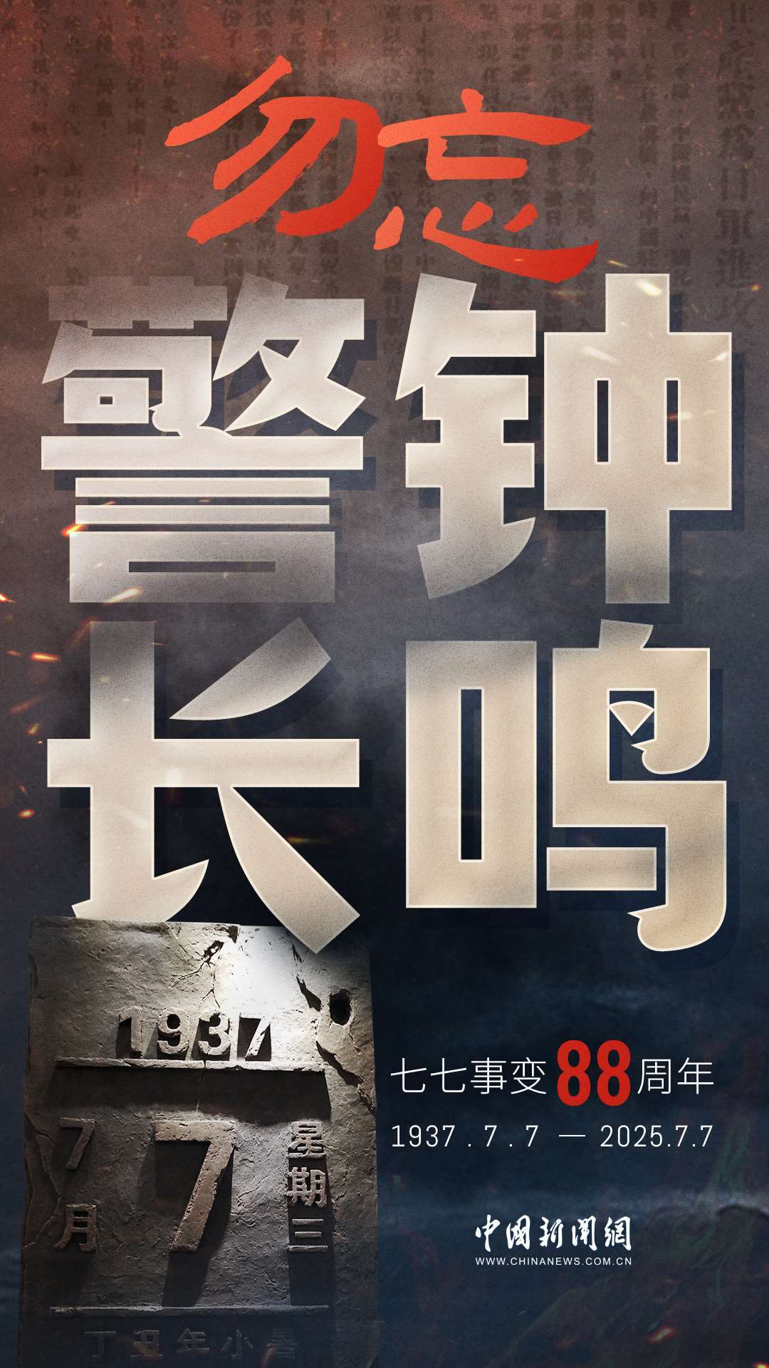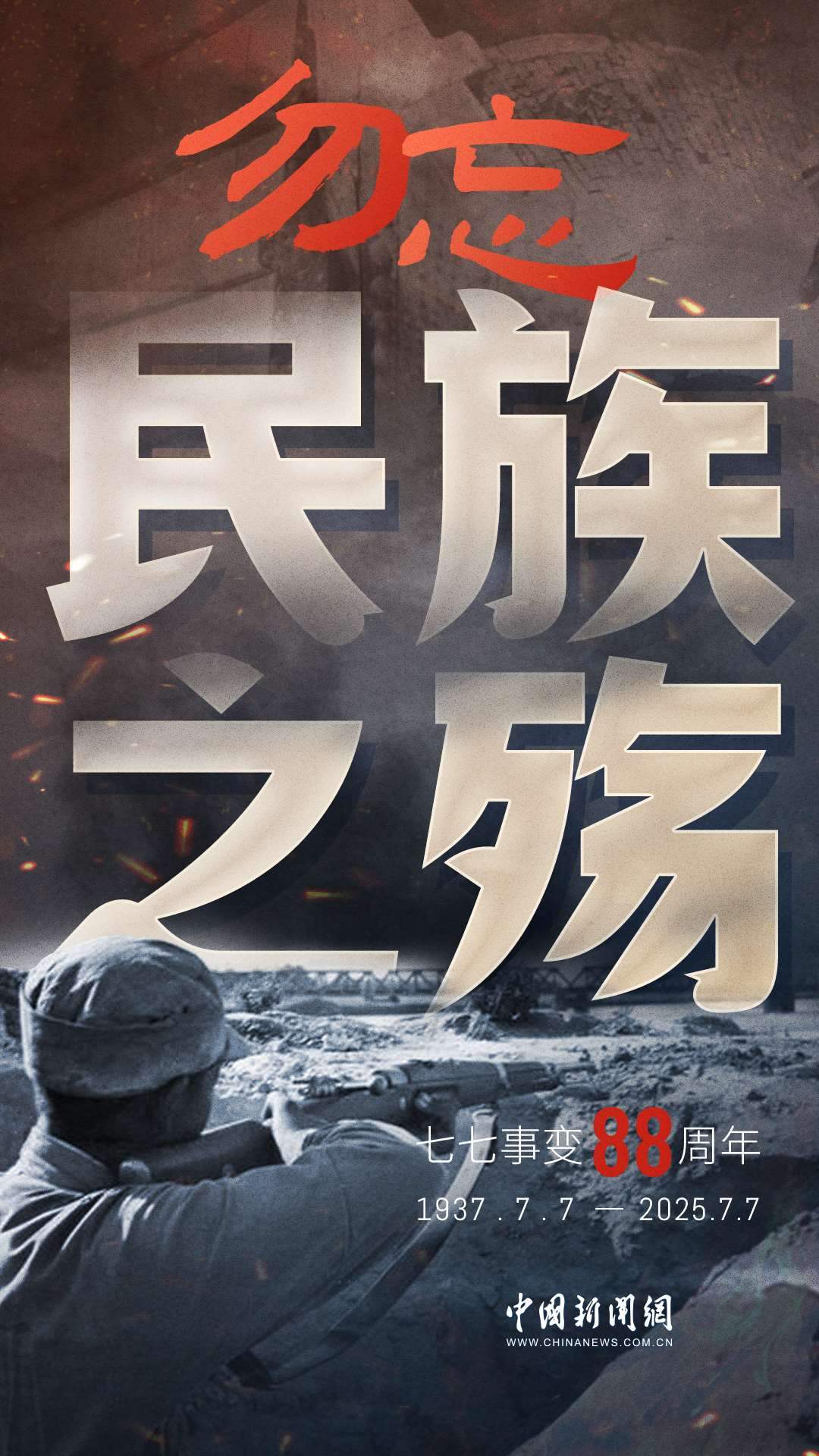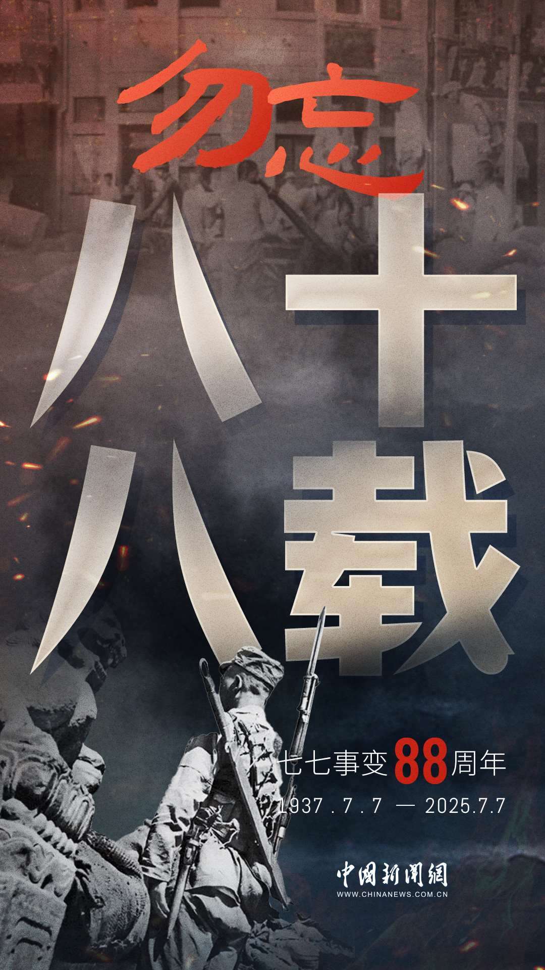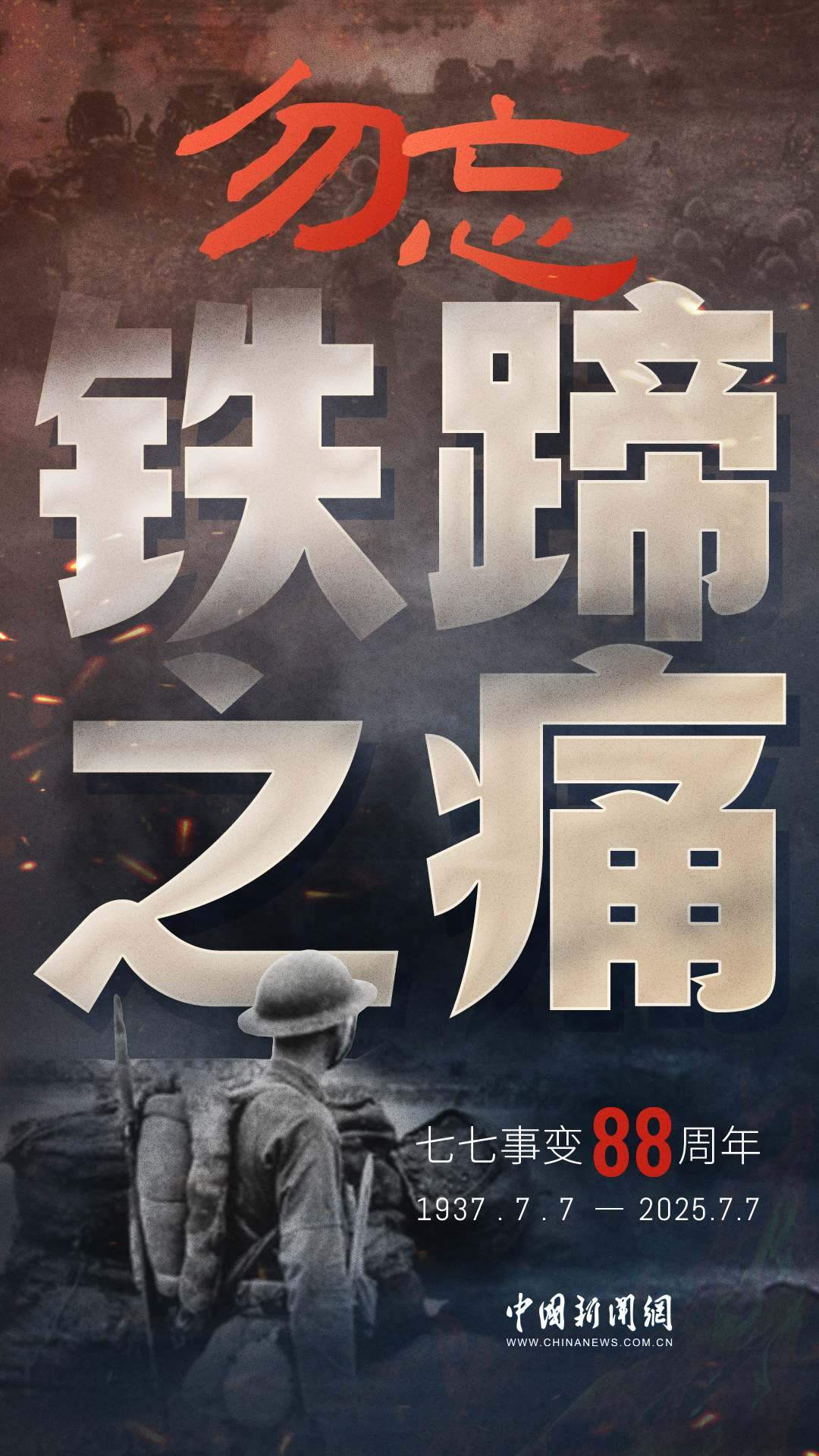 1937年7月7日,卢沟桥的枪声撕裂长夜,中华儿女赴汤蹈火,以血肉之躯筑起御敌长城。88载岁月流转,硝烟虽散,弹痕犹在,那段浸透血泪的历史,是刻在民族记忆里永不褪色的烙印。今日山河锦绣,国泰民安,正是先烈用生命换来的盛世。七七事变88周年,致敬英烈,铭记国殇,吾辈自强,护山河无恙!