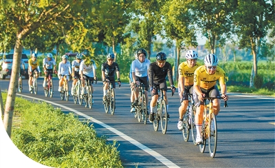 骑行爱好者在生态绿道上骑行。徐泽源摄