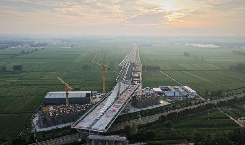当日,在山东德州,由中国铁建投资集团投资建设、中铁十四局集团承建的德州至上饶高速公路(简称“德上高速”)临清连接线跨京九铁路斜拉桥实现精准转体对接。该桥采用不对称矮塔斜拉结构,重达23500吨。
