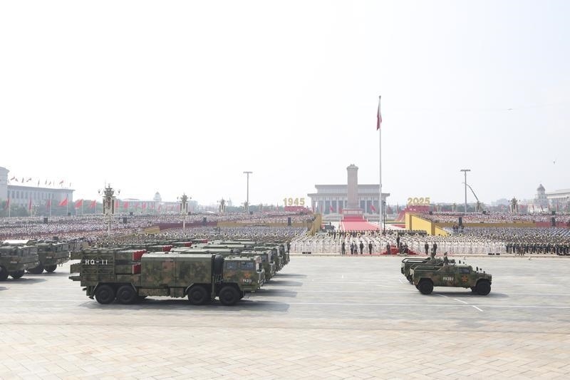 9月3日,纪念中国人民抗日战争暨世界反法西斯战争胜利80周年大会在北京隆重举行。这是对空抗击方队接受检阅。