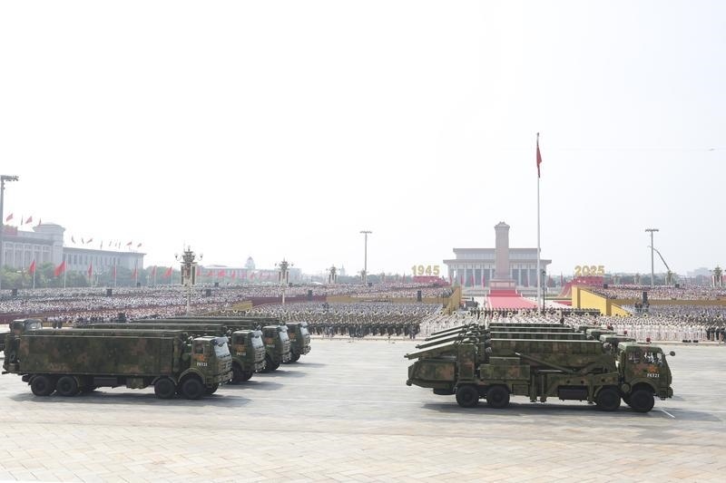 9月3日,纪念中国人民抗日战争暨世界反法西斯战争胜利80周年大会在北京隆重举行。这是舰载防空武器方队接受检阅。