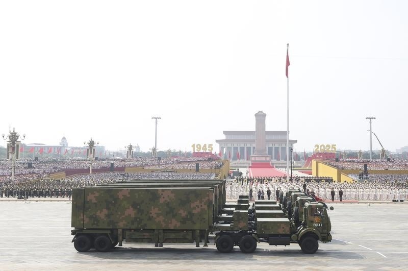 9月3日,纪念中国人民抗日战争暨世界反法西斯战争胜利80周年大会在北京隆重举行。这是特种机梯队通过天安门广场。