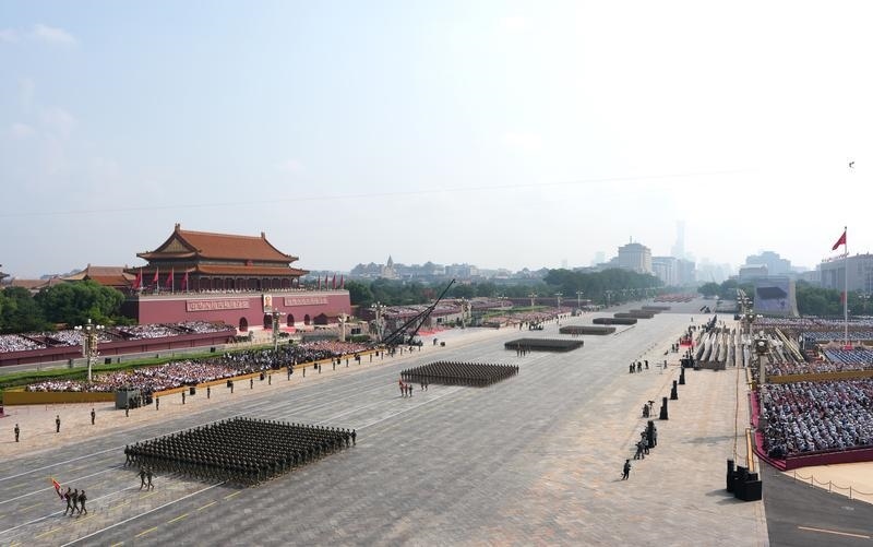 9月3日,纪念中国人民抗日战争暨世界反法西斯战争胜利80周年大会在北京隆重举行。这是徒步方队通过天安门广场。