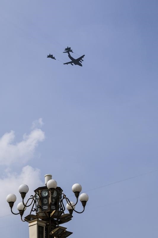 9月3日,纪念中国人民抗日战争暨世界反法西斯战争胜利80周年大会在北京隆重举行。这是加受油机梯队接受检阅。