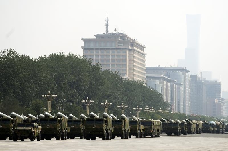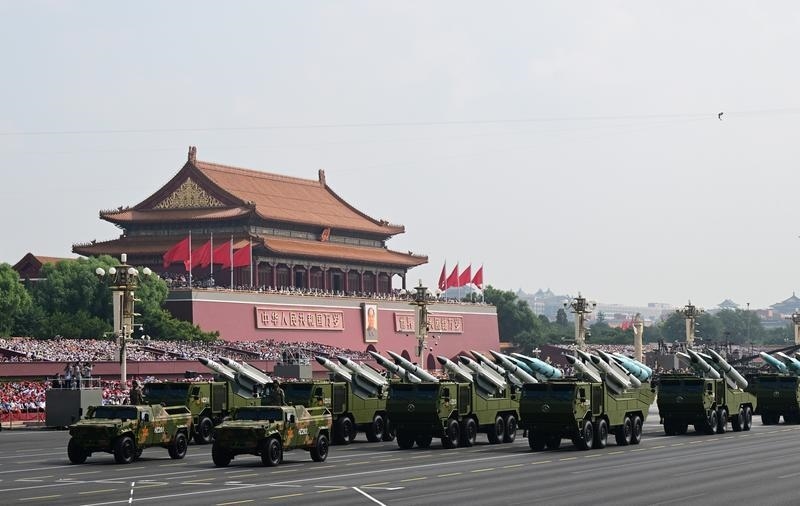9月3日,纪念中国人民抗日战争暨世界反法西斯战争胜利80周年大会在北京隆重举行。这是火箭军方队接受检阅。