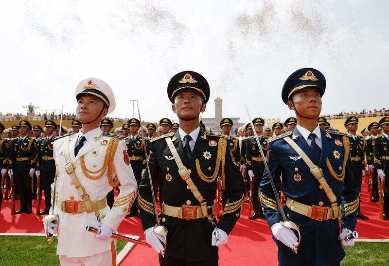 9月3日,纪念中国人民抗日战争暨世界反法西斯战争胜利80周年大会在北京隆重举行。这是国旗护卫队在天安门广场列队。