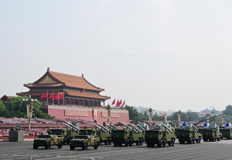 9月3日,纪念中国人民抗日战争暨世界反法西斯战争胜利80周年大会在北京隆重举行。这是反舰导弹方队接受检阅。