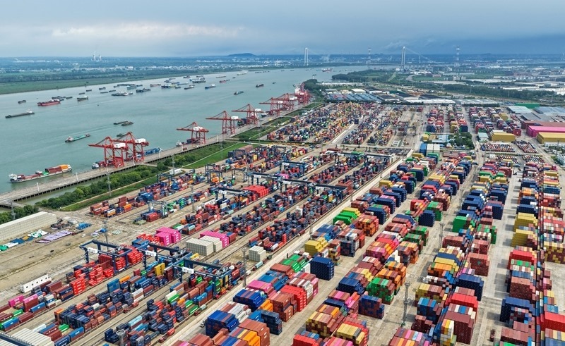 9月8日拍摄的江苏省港口集团南京港龙潭港区(无人机照片)。