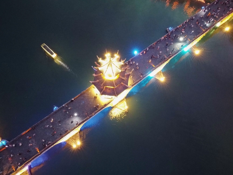 10月3日,游客在贵州省黔东南苗族侗族自治州镇远县古城游玩(无人机照片)。