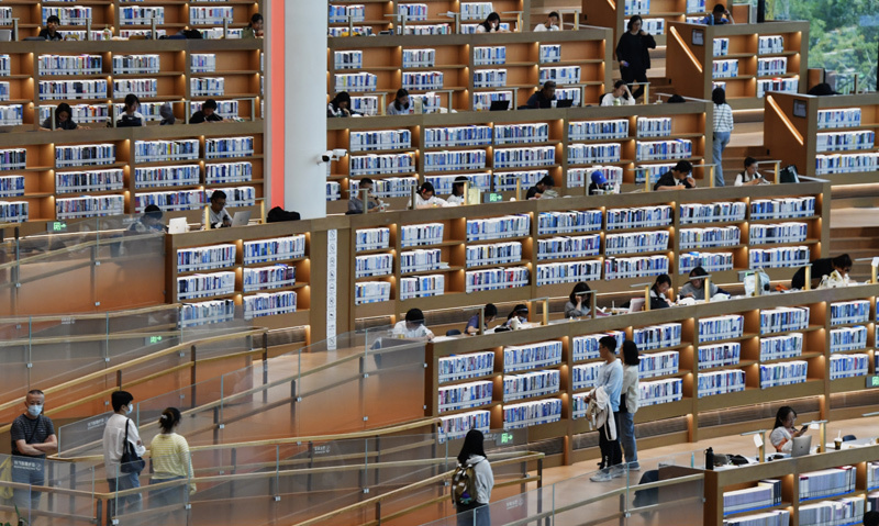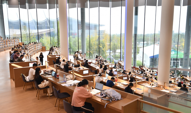 国庆假期,市民来到北京城市图书馆读书学习,在书香和静谧中度过假期。