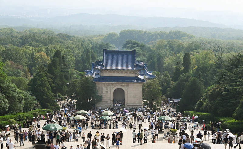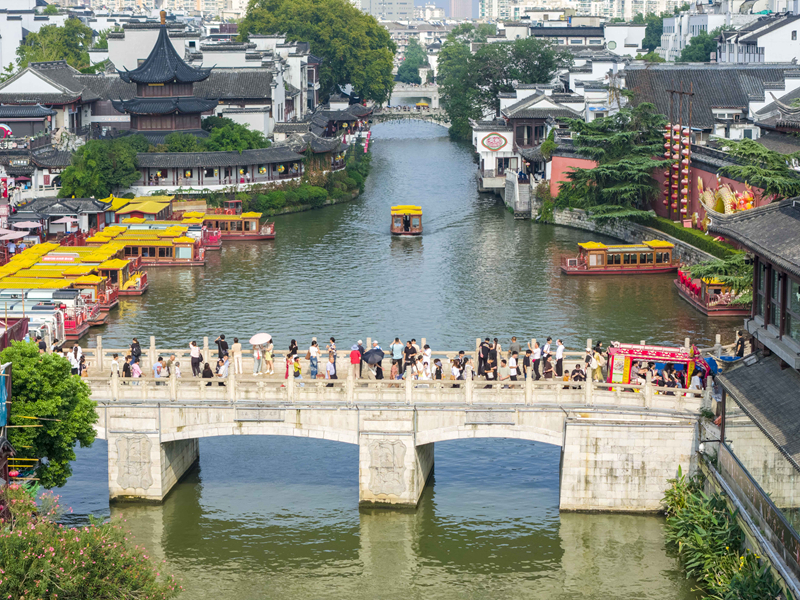 10月5日,人们在南京夫子庙景区游玩(无人机照片)。