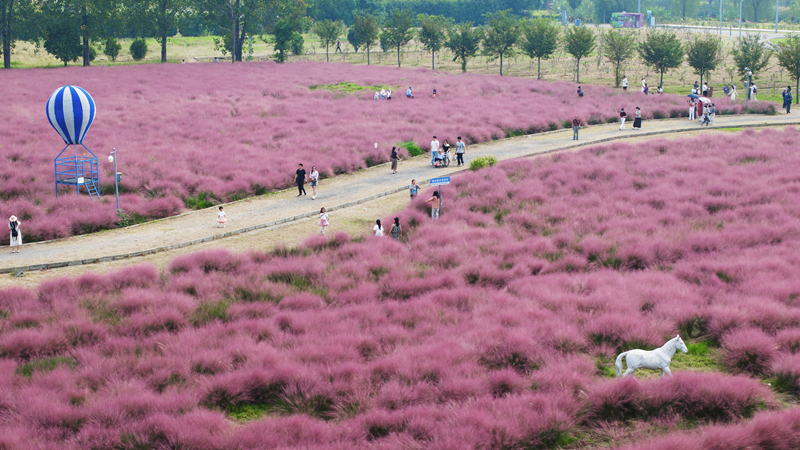 10月5日,人们在南京八卦洲陌上花渡游玩(无人机照片)。