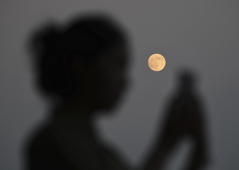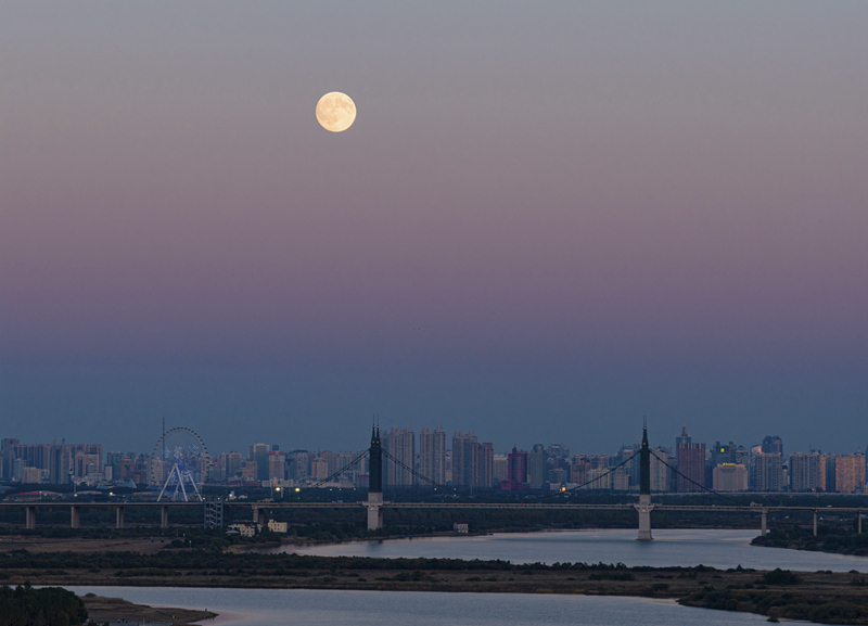10月6日在黑龙江省哈尔滨市拍摄的“超级月亮”。