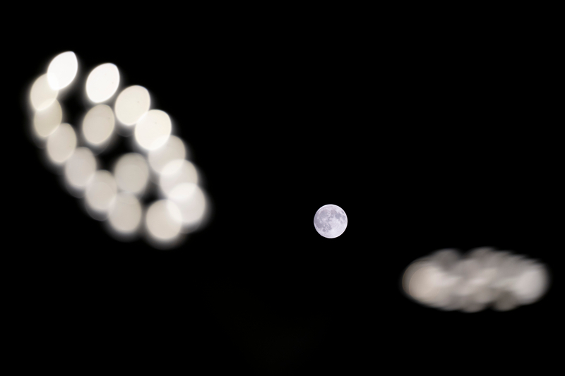 10月6日在黑龙江省哈尔滨大剧院拍摄的中秋满月(无人机照片)。