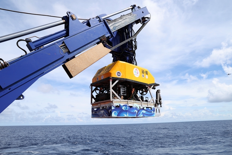“海洋地质二号”科考船搭载“海马”号深海遥控潜水器在南海北部进行“源火”采集(9月18日摄)。