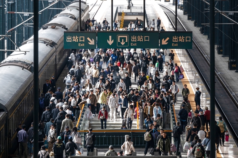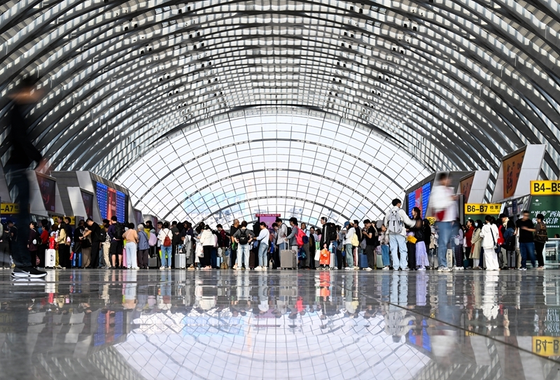 10月7日,国庆中秋假期进入尾声,各地返程客流攀升。
